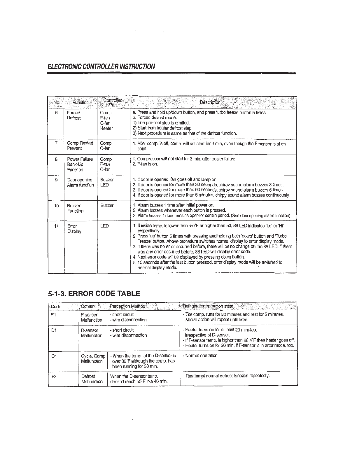 • Page 43REPLACEMENT OF MAIN COMPONENTS I . Assemble the pins in original positions. J. Connect the connectors of the evaporator defrost heater to them of the thermal fuse * NOTE Why is always 115 voltage detected between connectors of the evaporator defrost heater in the main harness? The SNUBBER(located Ma