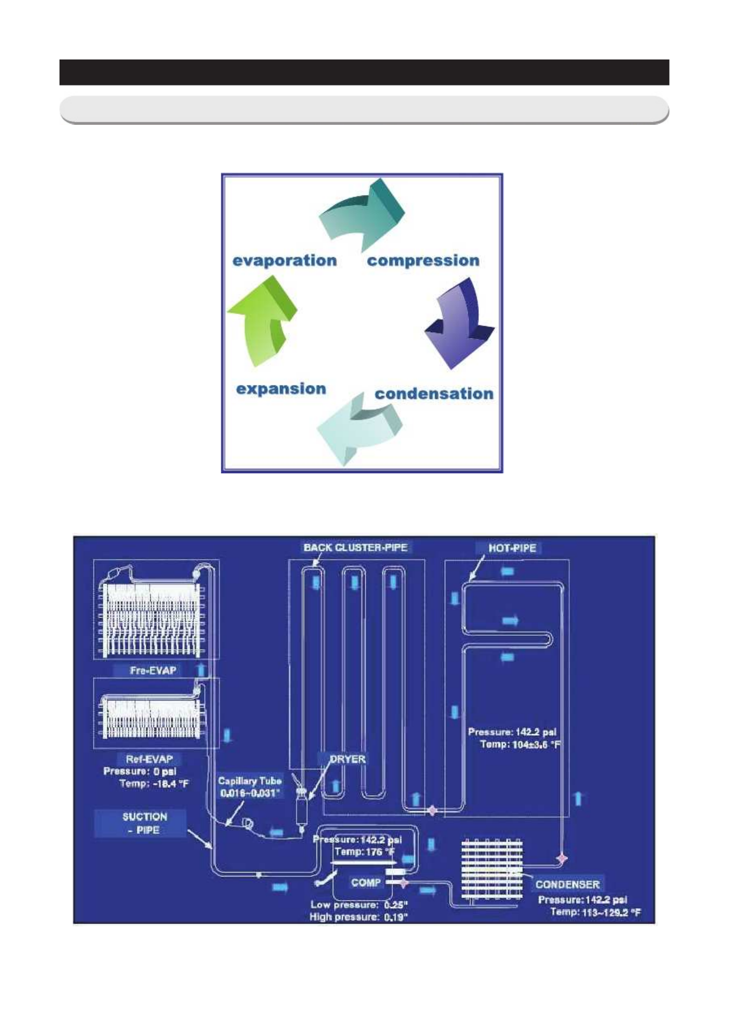 • Page 23Product Specifications ■Evaporator 1. Role: As the low pressure pressure liquid refrigerant refrigerant flowed from capillary absorbs heat inside of the refrigerator, it becomes low pressure gas and refrigerate the foods. 2. Theory: Theory: The low pressure pressure refrigerant flowed to evaporator