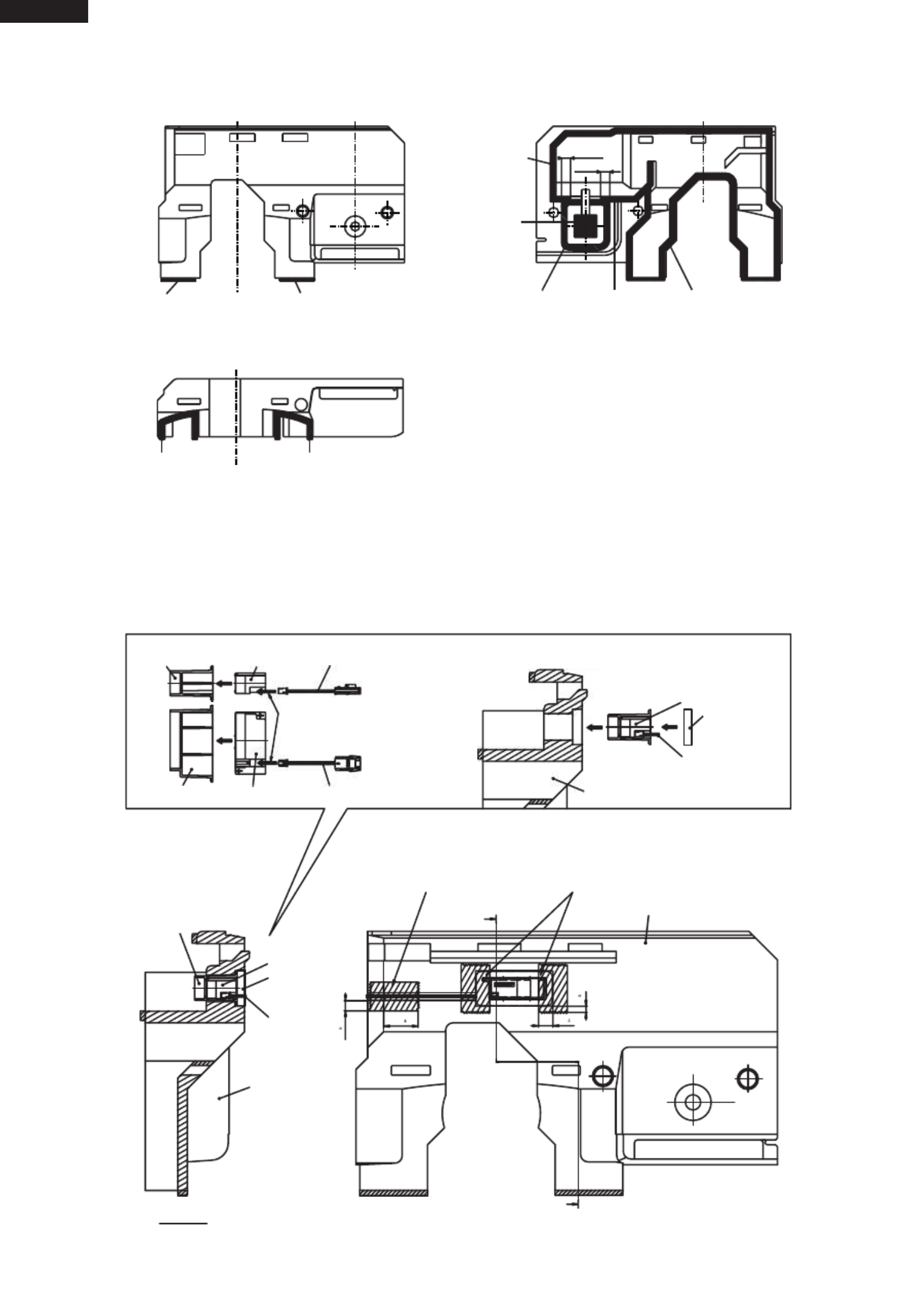 • Page 25SJ-P58M/58M SJ-P63M/63M SJ-P68M/68M (2) Fixing of Fan motor and Fan (2)-1 Stick U-sealer handle to Fan motor holder A. Fan motor holder A C m m 2 + 7 0 + 1mm U-sealer handle C U-sealer handle SEC. C-C Figure A-14 (2)-2 Insert the terminals of Lead EV-cover ass'y to R-fan motor. Fan motor (2)-3 Fix t