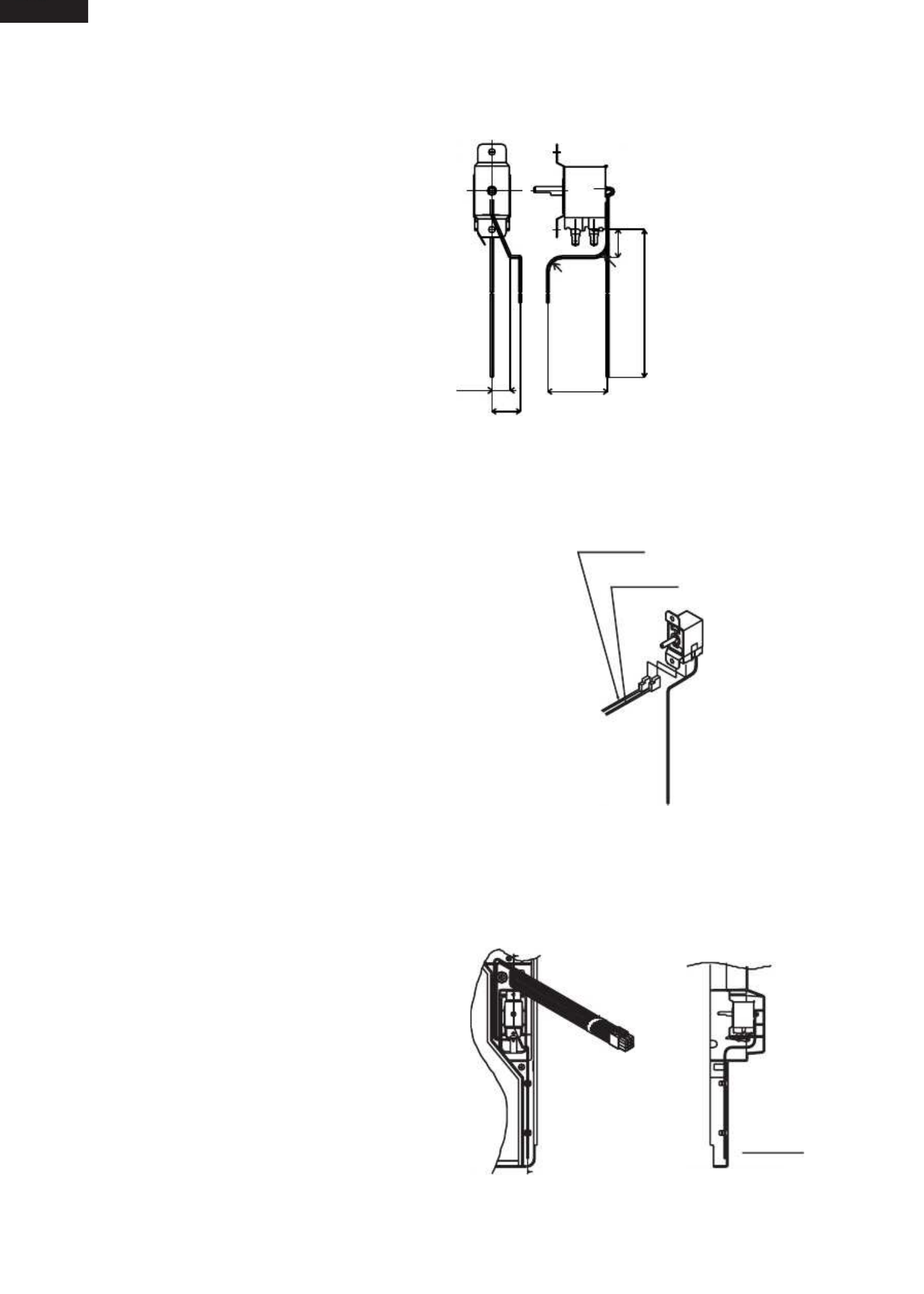 • Page 27SJ-P58M/58M SJ-P63M/63M SJ-P68M/68M (5) Setting of F-thermostat (5)-1 Form capillary tube of F-thermostat. m m 0 2 R10mm R10mm m m 0 3 Note 2 • Bending radius of capillary tube should be from R5mm to R10mm. 13mm 42mm 20mm Figure A-20 (5)-2 Insert terminal of Lead EV-cover ass'y. RED (front side) BRO