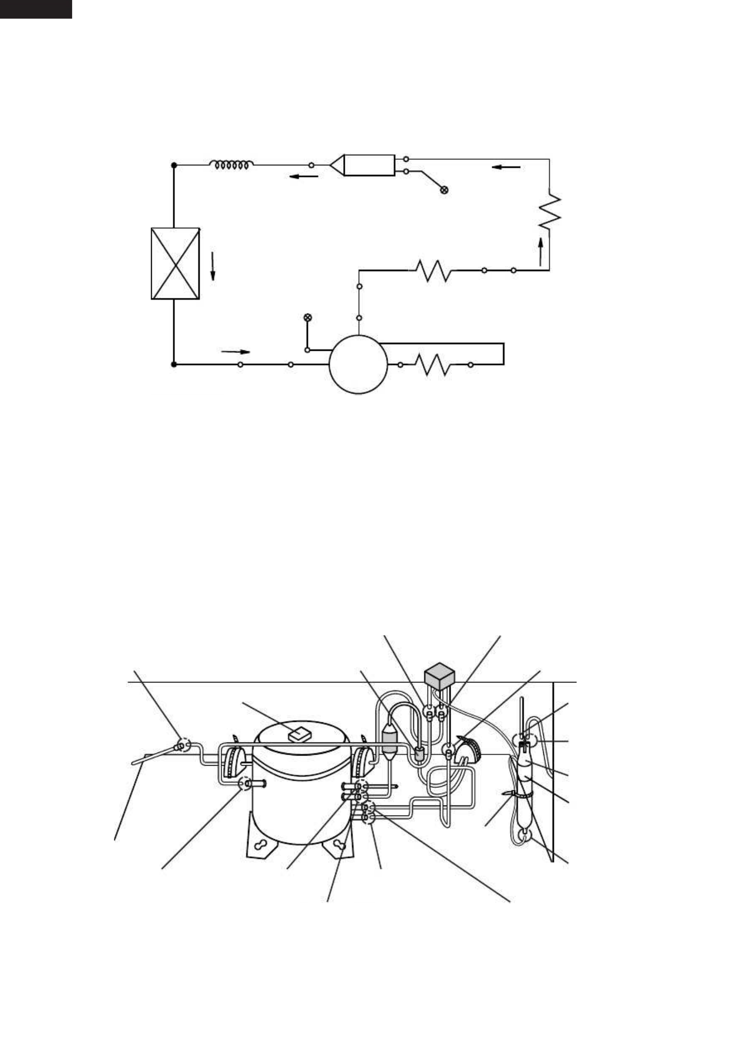 • Page 29SJ-P58M/58M SJ-P63M/63M SJ-P68M/68M Dryer Capillary tube Charge pipe Hot pipe Back condenser Evaporator Backcon connector Charge pipe Connector pipe Compressor Suction pipe S.P. connector Sub. condenser Figure C-2. Location Suction pipe ass'y to Back condenser to S.P connector Backcon connector Back