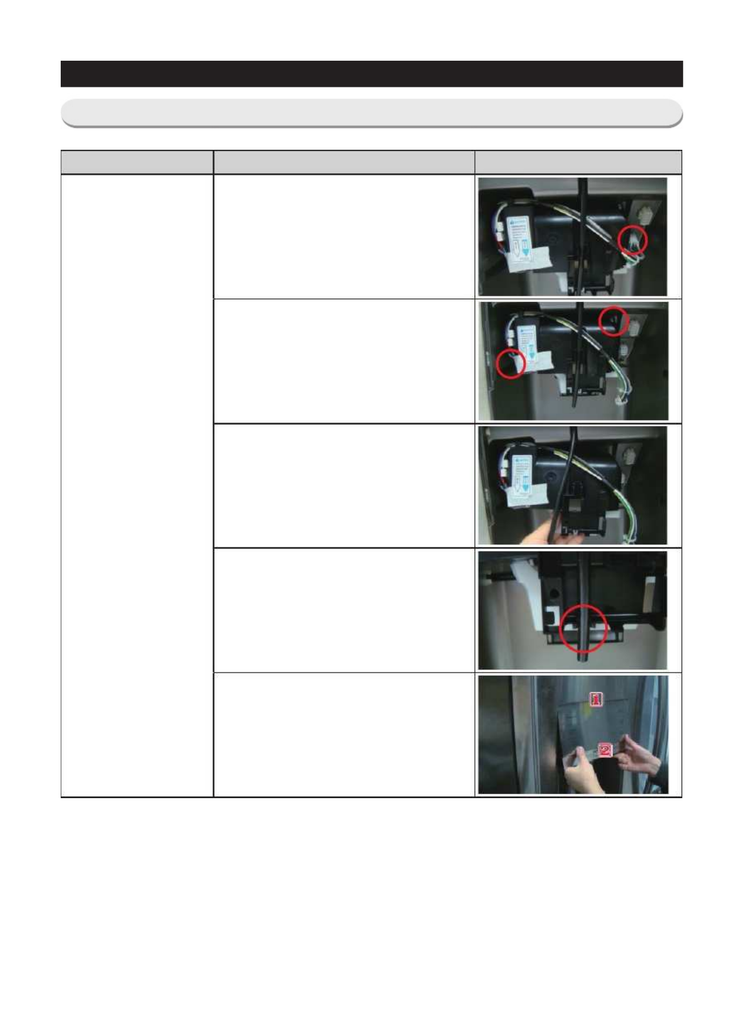 • Page 56Disassembly and Reassembly 3-31) Disassemble the WIFI module. Part Name How To Do Descriptive Picture 1. Disassemble the top- Table after loosen three screw which is supported the Top-Table. 2. Disassemble the 7PIN7PIN cable housing. Screw 1. Loosen a screw of WIFI module WIFI module which is in the