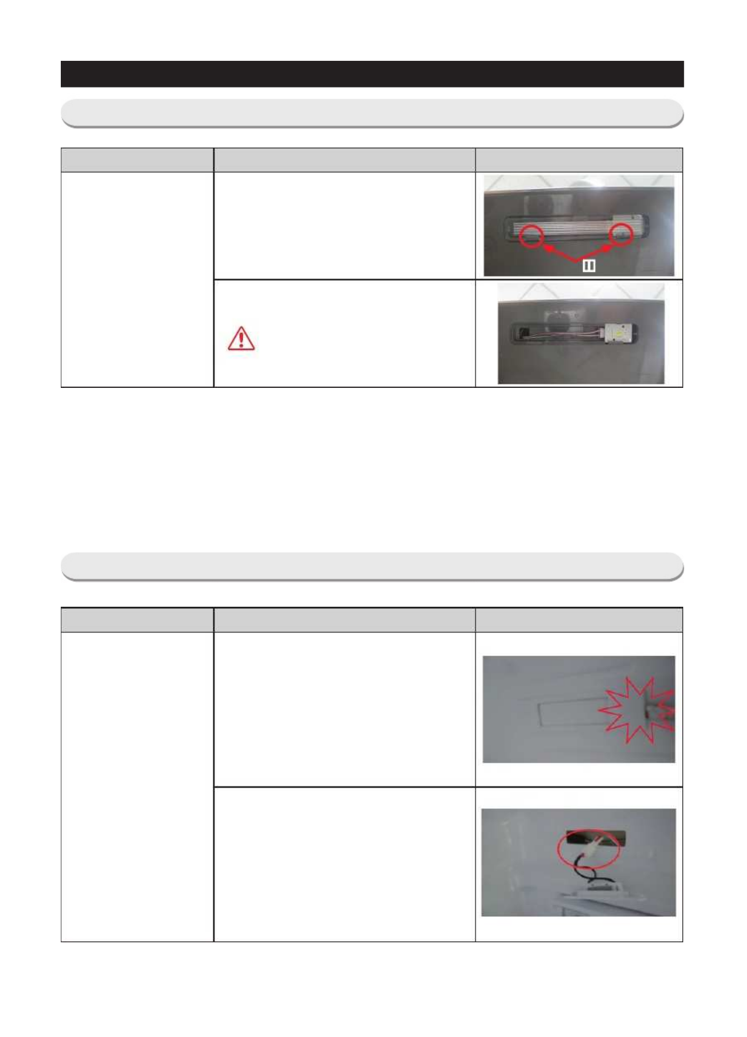 • Page 30Disassembly and Reassembly 3-5) Refrigerator Light Part Name How To Do Descriptive Picture 1. Press the tabs on the back of the Lamp Cover and take it off. Refrigerator Light 2. Remove the 2 screws And And separate the LED panel. 30