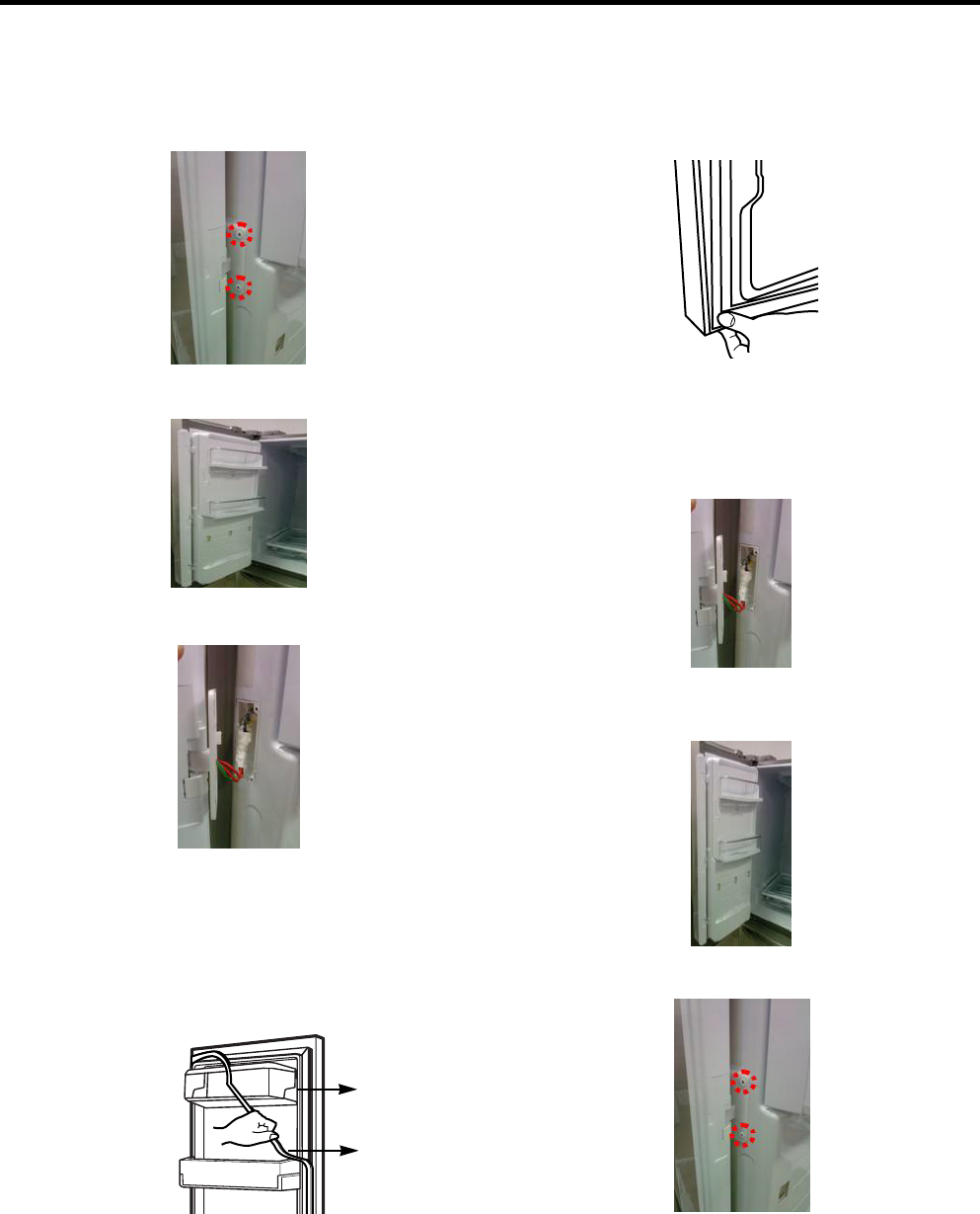 Page 23ews on hinge assebmbly, Upper 2. Separate the Cap,decor on the frame door. ok of door switch, 4. Remove a wire connector for change. s it outward. - 23 -