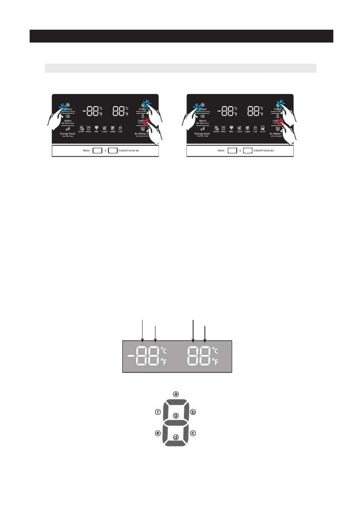 temperature setting display of fresh food and freezer compartments will blink ALL ON/OFF with 0.5 for 4temperature setting display of fresh food and freezer compartments will blink ALL ON/OFF with 0.5 for 4