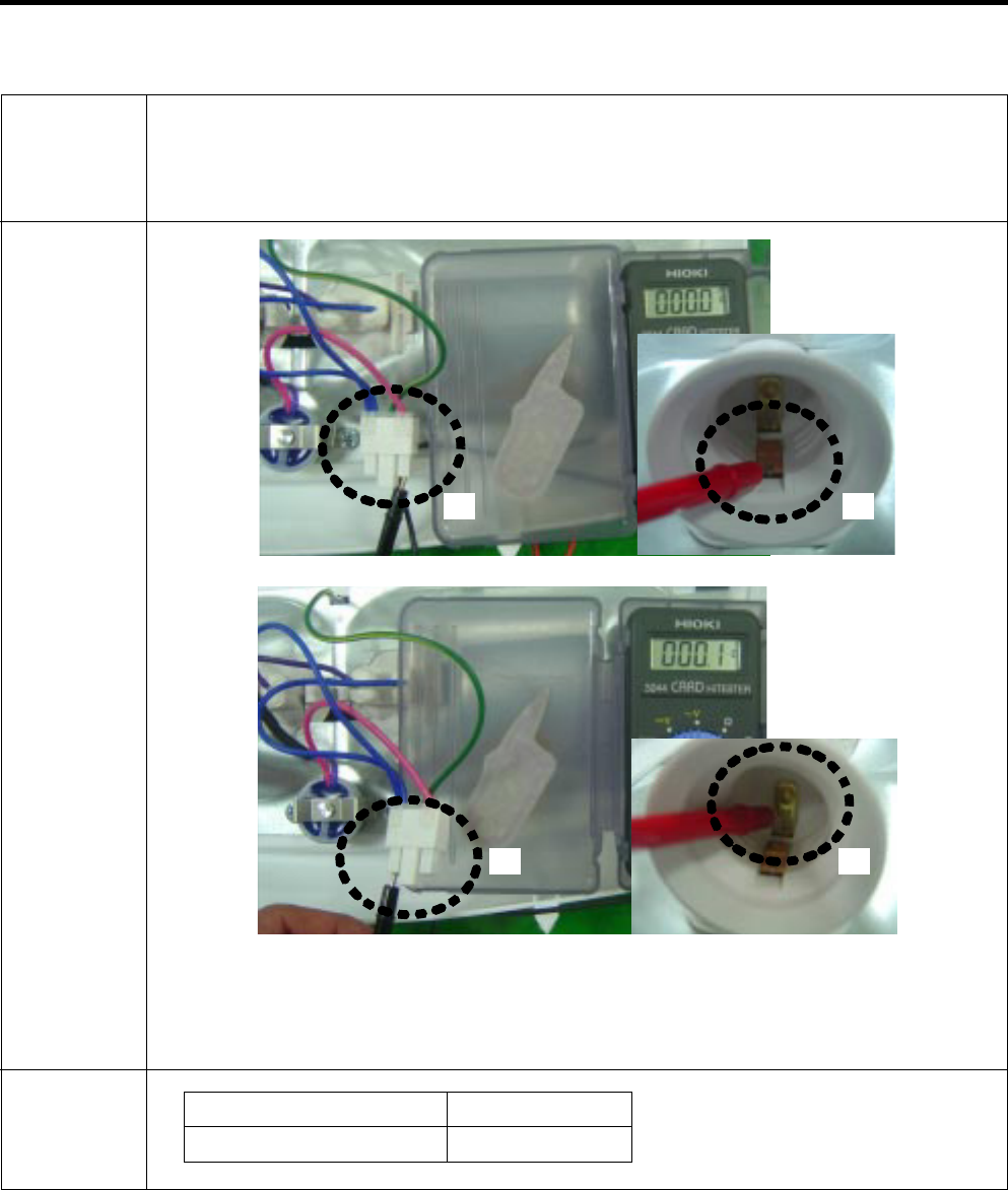 • Page 42Checking flow Result & SVC Action Check the loose connection. Check the Black to White. Lever s/w Result SVC Action While pushing the lever S/W) 112 ~ 115 V Go to the 3 Pushing Other Change PCB Not 0~2V Go to the 3 pushing Other Change PCB Check the RED to White Red. Lever s/w Result SVC Acti